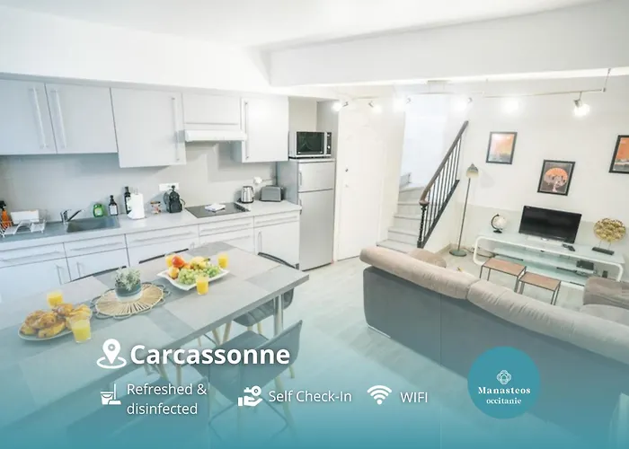 ממוקמת במרחק של 5 דקות הליכה מchâteau et Remparts de la Cité de Carcassonne, Au Pied Des Remparts- Maison De Caractere-3 Ch-Ac מציעה שהייה בעיר קרקסון עם מטבח מצויד. ישנם 1 חדרי שינה ובנוסף 1 חדרי אמבטיה במקום השהייה.